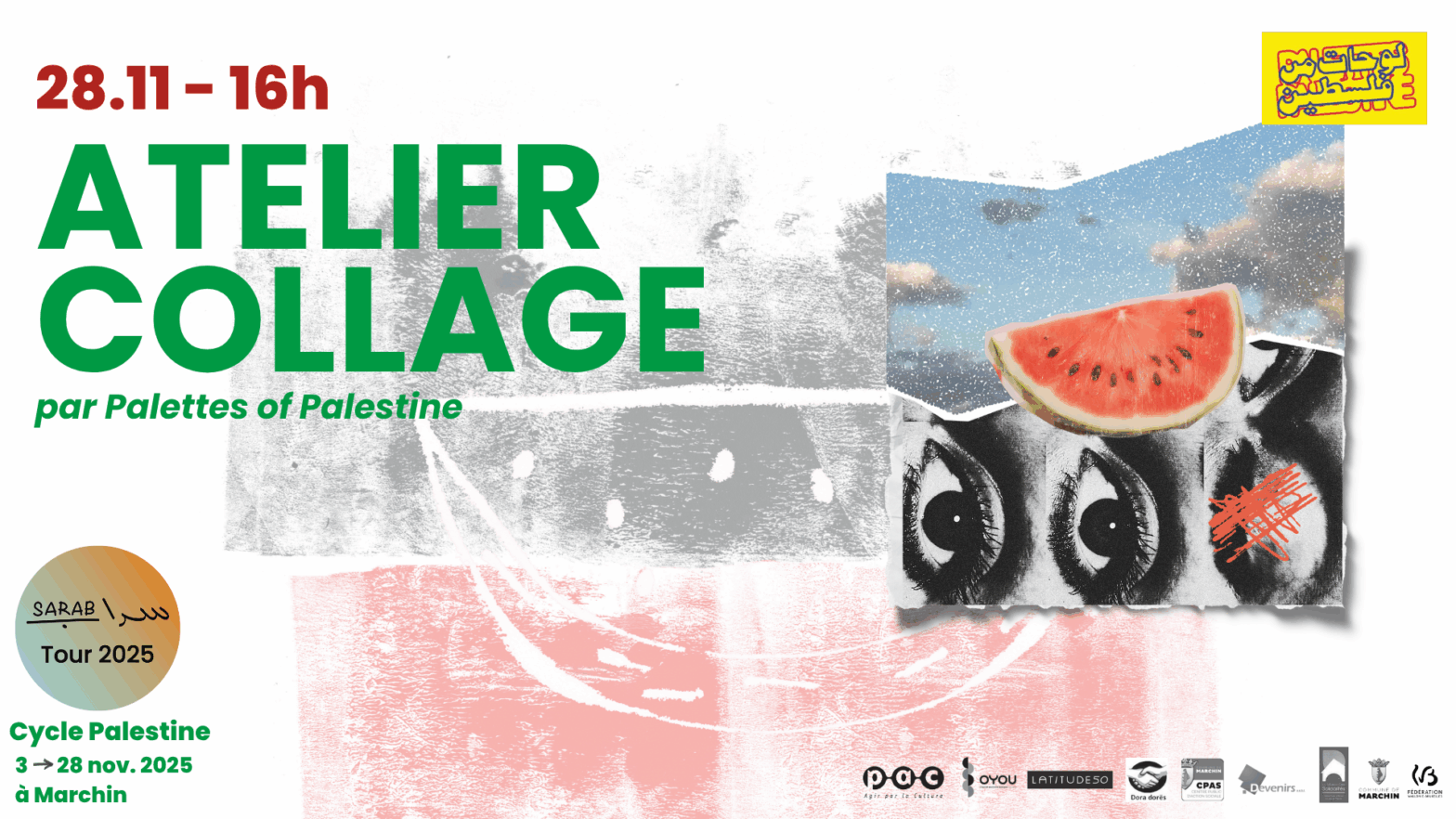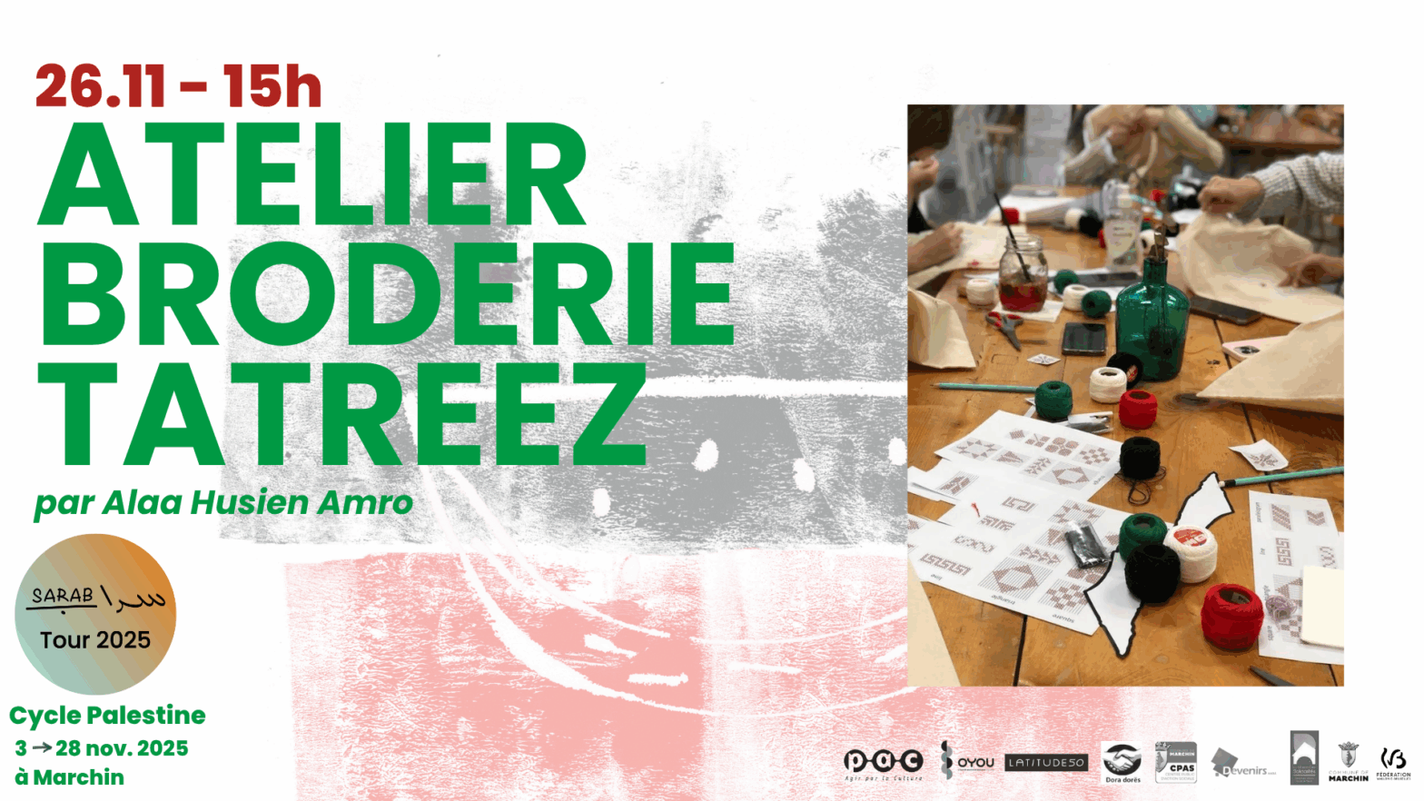 Du 13 au 28 novembre 2025, plusieurs acteurs associatifs, culturels et sociaux de Marchin s’unissent pour proposer un cycle d’activités autour de la Palestine. Dans un contexte de violences structurelles… Continue reading Cycle Palestine