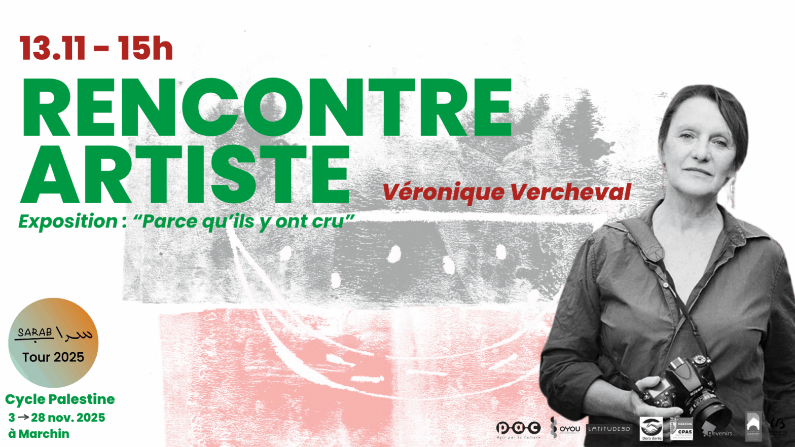 Du 13 au 28 novembre 2025, plusieurs acteurs associatifs, culturels et sociaux de Marchin s’unissent pour proposer un cycle d’activités autour de la Palestine. Dans un contexte de violences structurelles… Continue reading Cycle Palestine